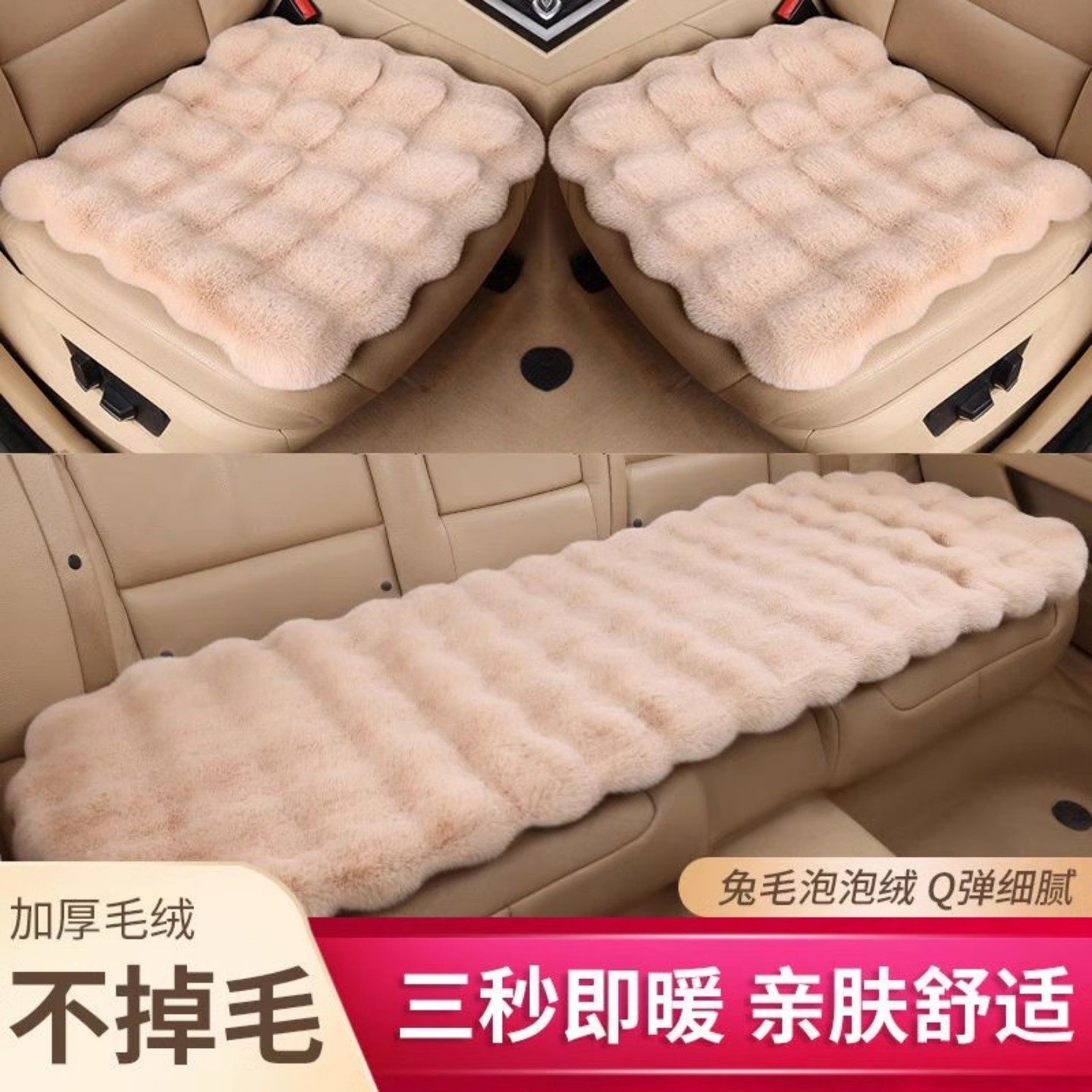 汽车坐垫冬季兔毛绒单座无靠背三件套羊毛短毛保暖防滑加厚通用垫