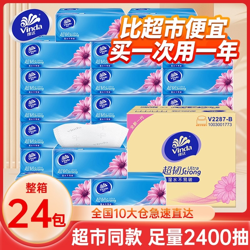 维达超韧抽纸3层100抽24包餐巾纸面巾纸抽家用实惠装大包卫生纸巾