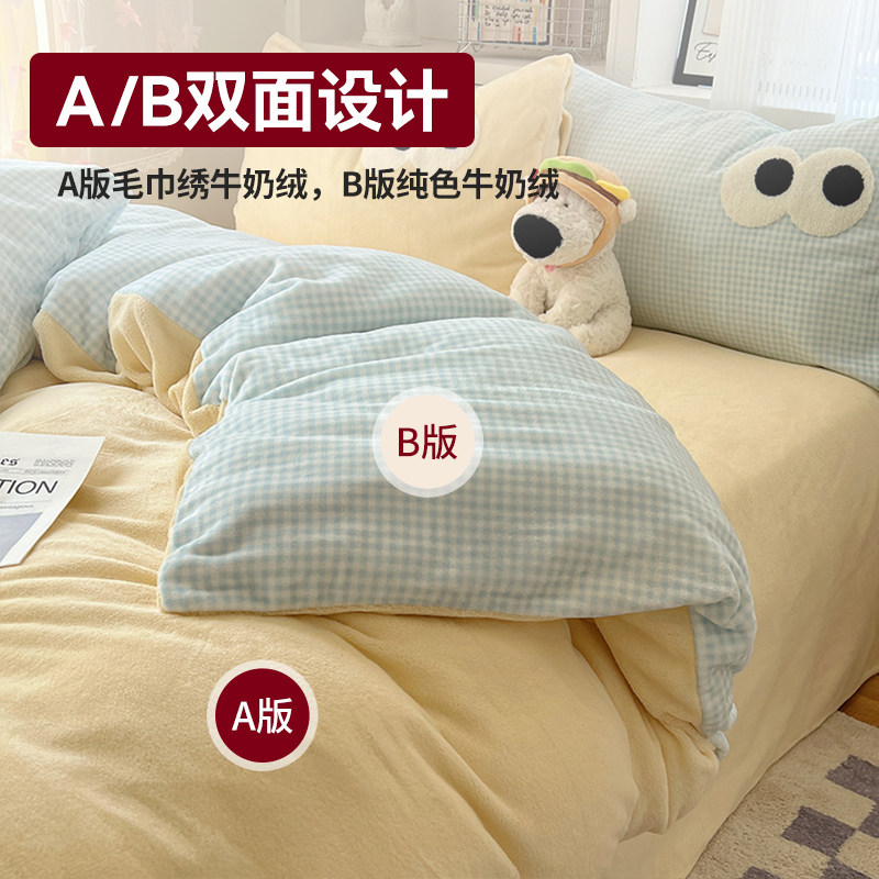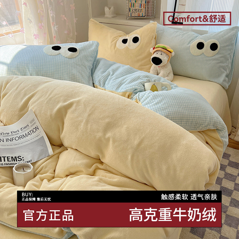 秋冬季加厚四件套牛奶绒被套床单双面加绒被罩床笠学生宿舍三件套