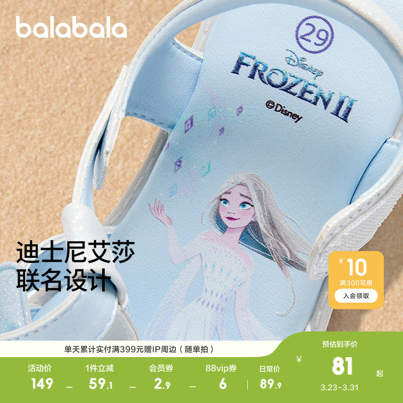 【迪士尼IP】巴拉巴拉童鞋女童凉鞋夏季公主鞋软底宝宝鞋子爱莎