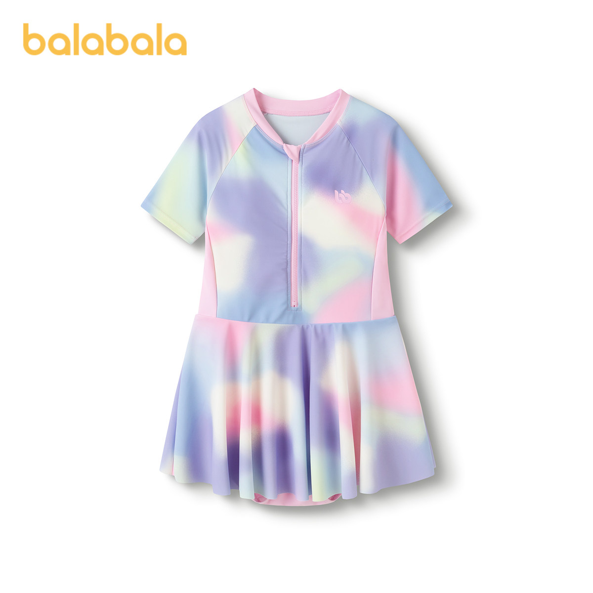 巴拉巴拉女童泳衣儿童泳装中大童防晒连体泳装晕染印花甜美泡温泉
