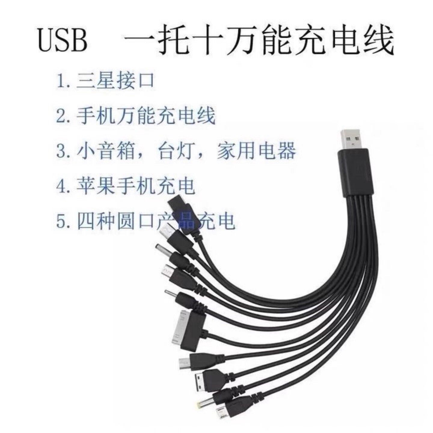 一拖十多功能手机充电线老人机电源多头10十合一USB数据线多用老款DC圆形插头适用诺基亚安卓老式接口充电器
