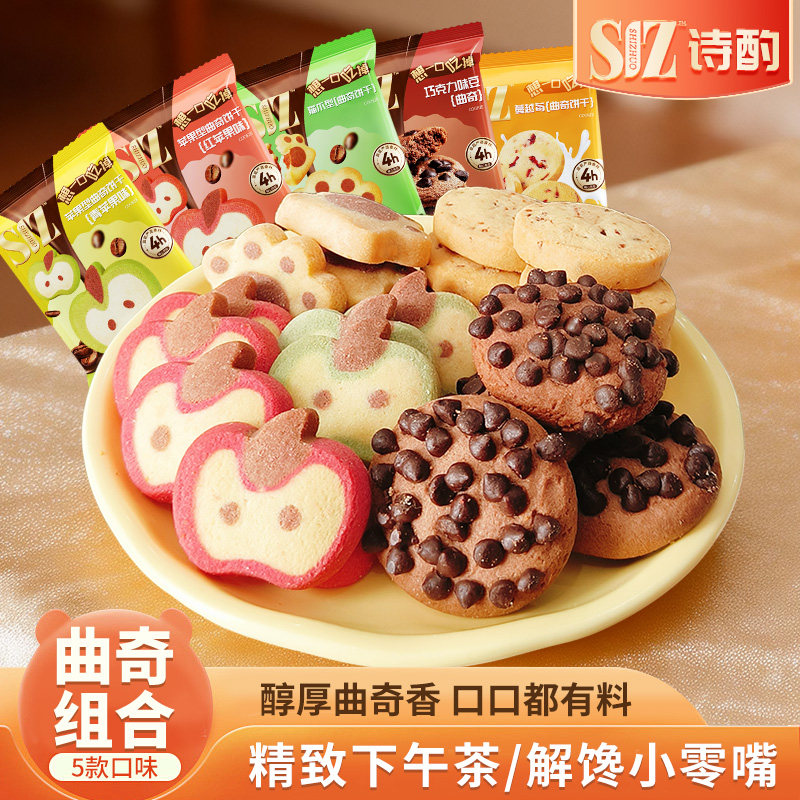 诗酌五组曲奇饼干巧克力蔓越莓味独立小包装零食饼干网红同款