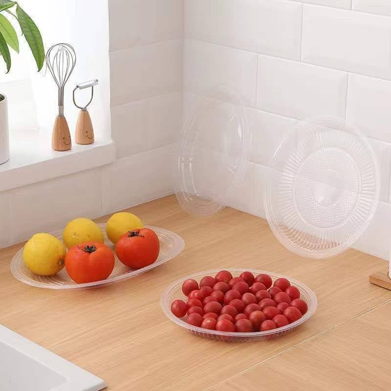 一次性盘子塑料装菜酒席烧烤加厚菜碟菜盘透明圆形水果盘野餐