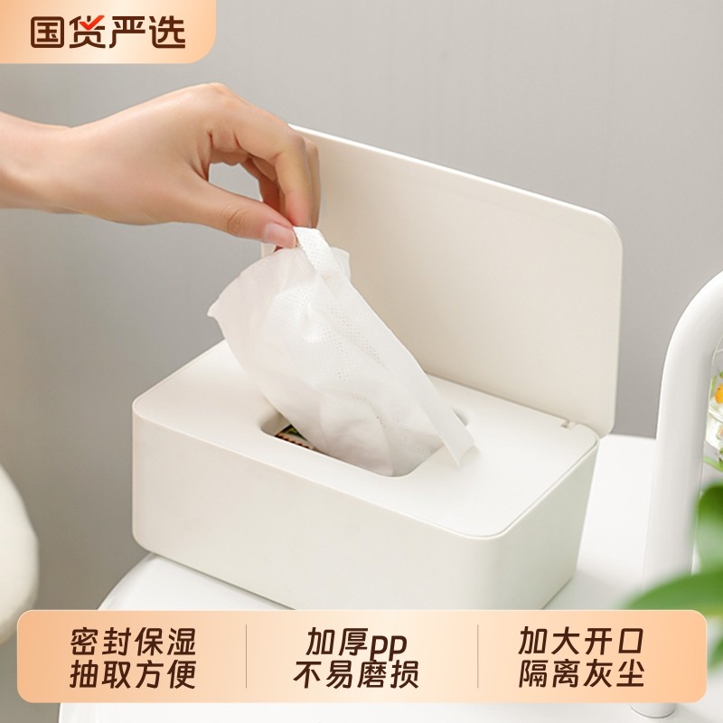 日本湿巾盒密封抽取式纸巾盒带盖桌面塑料收纳盒防尘口罩多功能