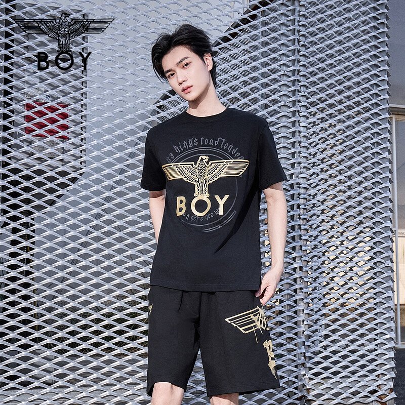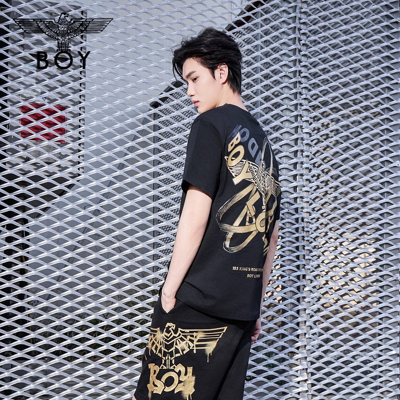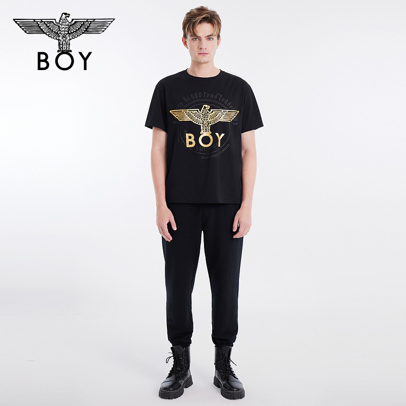 【时光轮环】BOYLONDON短袖情侣款春夏老鹰光环黑色T恤N01902