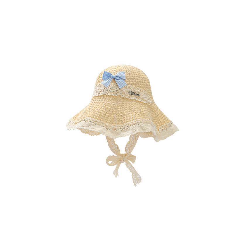 妖精的口袋蕾丝蝴蝶结编织草帽2025年新款大帽檐遮阳显脸小帽子