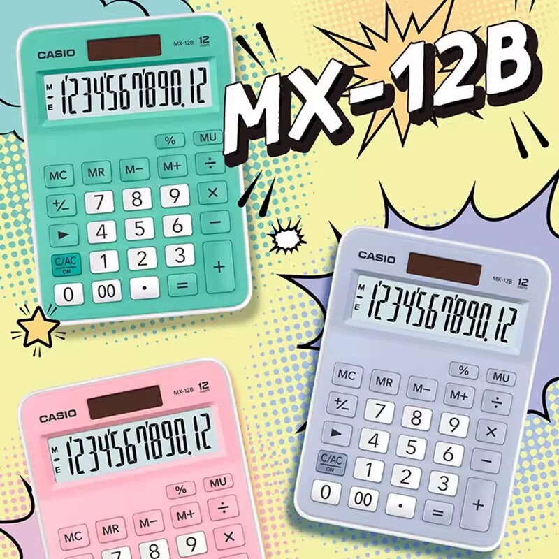 CASIO卡西欧MX-12B彩色计算器定制刻字学生考试专用小号商务财务桌面办公双电源时尚少女心12位数学课无语音