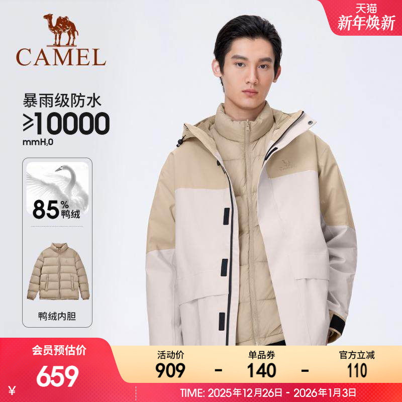 骆驼户外山系冲锋衣男三合一鹅绒内胆防寒保暖秋冬旅行耐磨外套女