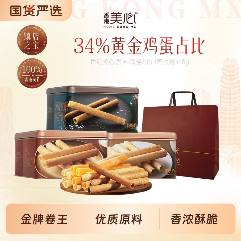香港美心原味鸡蛋卷448g礼盒零食饼干黄油曲奇高端送礼物新年海盐