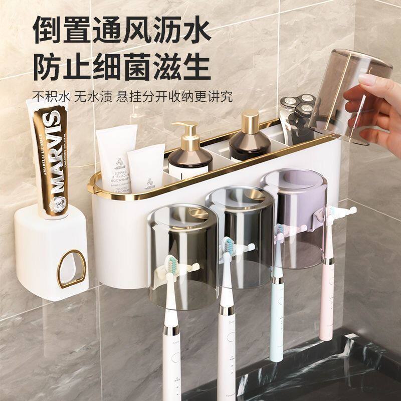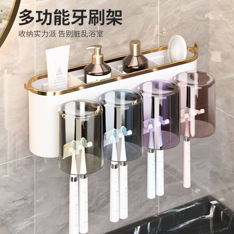 轻奢电动牙刷置物架牙杯架壁挂免打孔卫生间洗漱杯漱口杯收纳套装