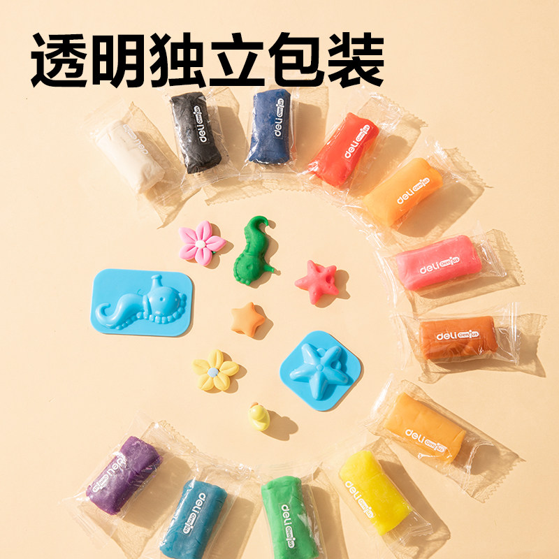 得力橡皮泥安全无毒儿童食品级无味幼儿园专用彩泥24色12色小学生diy手工桶装玩具套装女孩模具黏土超轻粘土