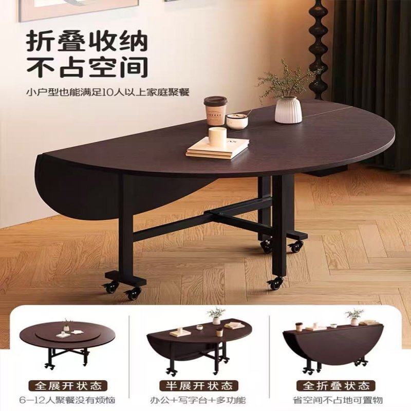 折叠桌圆形桌子餐桌饭桌家用小户型折叠大圆桌转盘吃饭桌面多功能