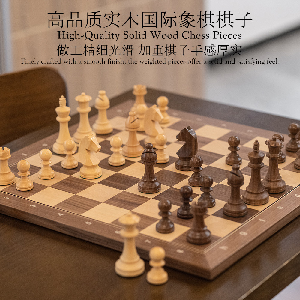 A&A CHESS/领御95mm高档实木贴皮国际象棋标准比赛棋盘棋子套装