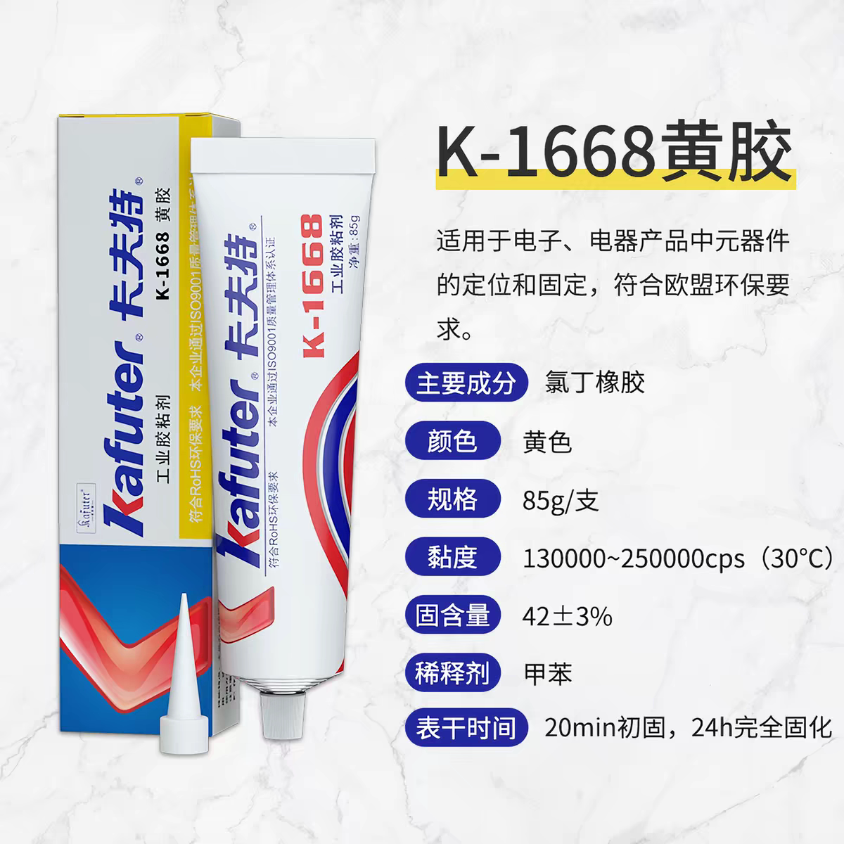 卡夫特K-1668黄胶 200R红胶绝缘放水耐高温电子线路板元器件固定