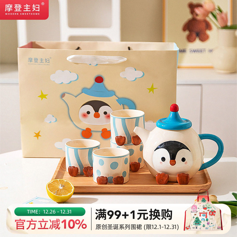 摩登主妇陶瓷泡茶壶家用水杯子茶杯生日乔迁礼物新婚结婚茶具套装