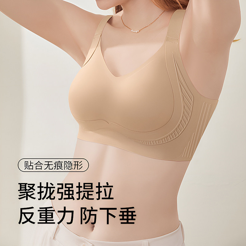 润微隐形无痕粉底液内衣女薄款反重力提拉大码大胸显小收副乳文胸