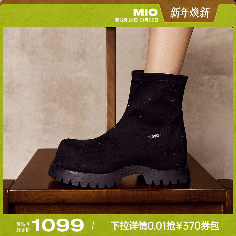 MIO米奥袜靴2025冬季新款圆头中跟厚底增高百搭弹力靴瘦瘦靴女靴