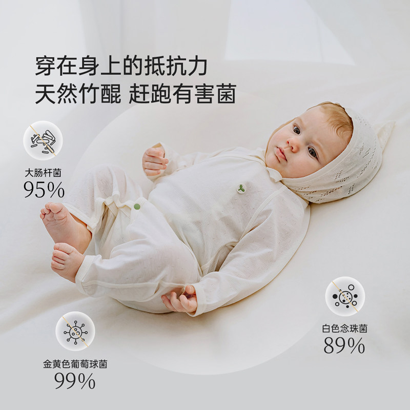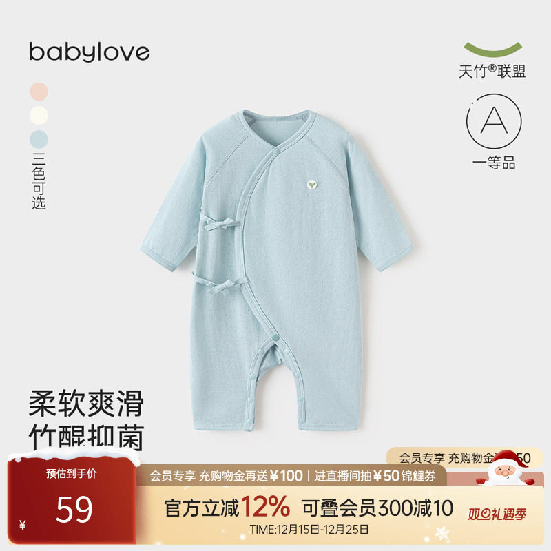 babylove新生儿连体衣春秋婴儿系带哈衣爬服竹棉初生宝宝四季睡衣