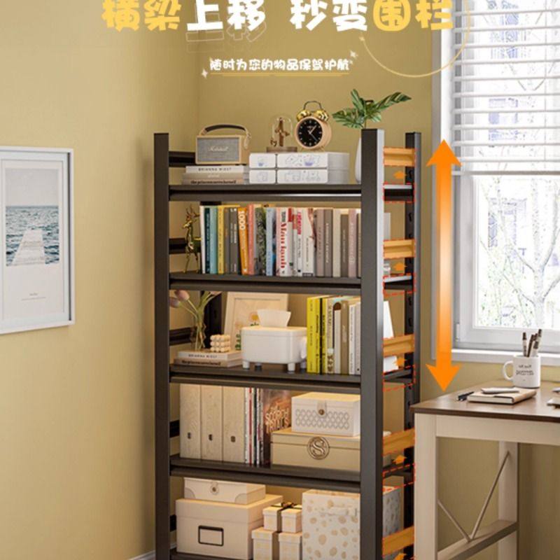 书架简约落地钢木多层客厅简易储物架家用卧室收纳铁艺书柜置物架