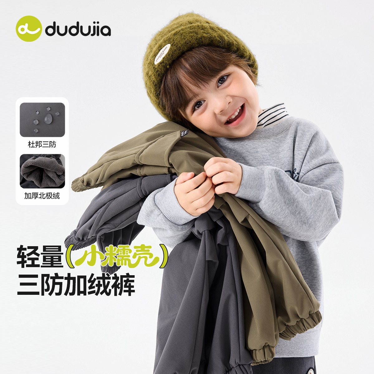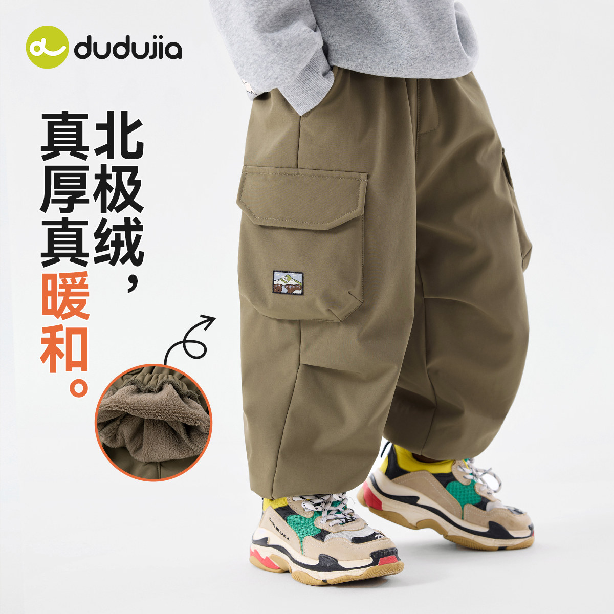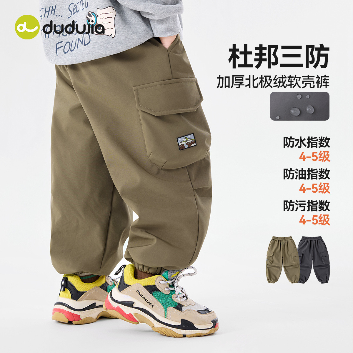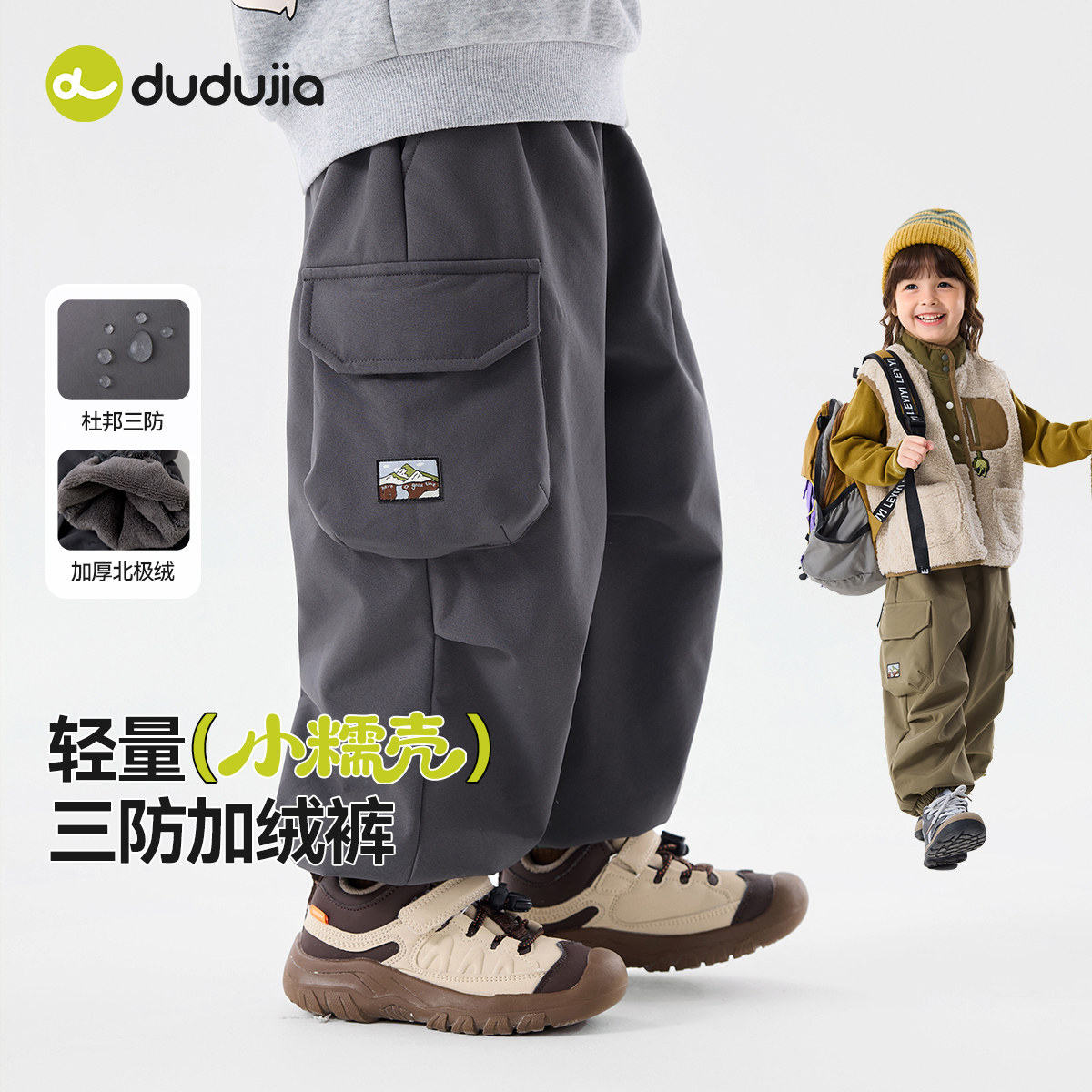 【软壳三防】嘟嘟家男童裤子秋冬加绒儿童工装裤冬季宝宝长裤冬装