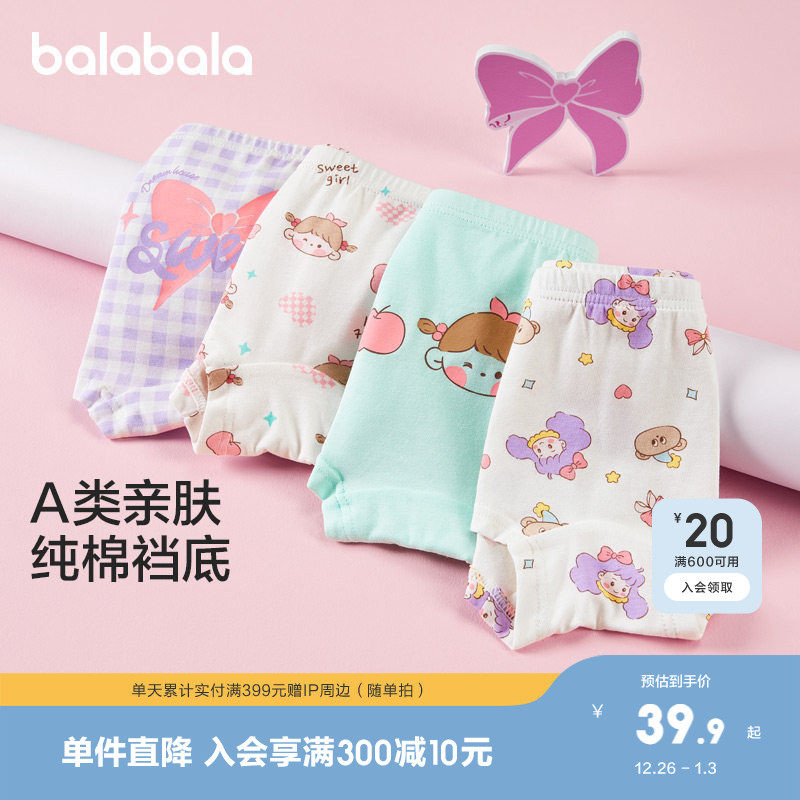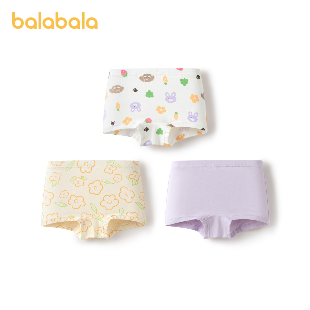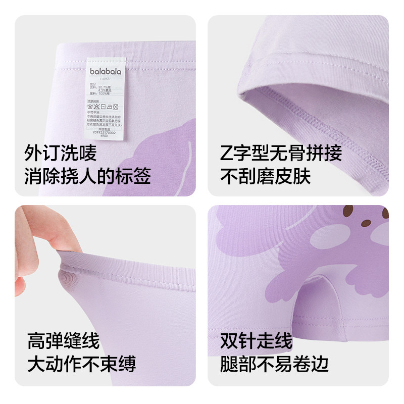 巴拉巴拉宝宝内裤棉a类儿童平角短裤女童亲肤男童四角裤三条装萌
