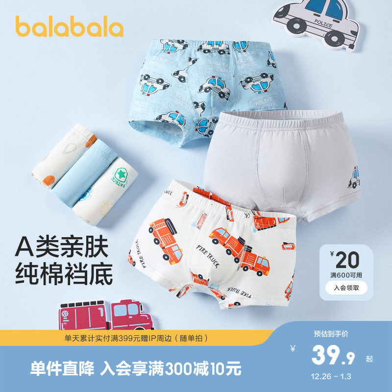 【balaOne】巴拉巴拉儿童内裤棉男童不夹pp抗菌裆四角短裤三条装