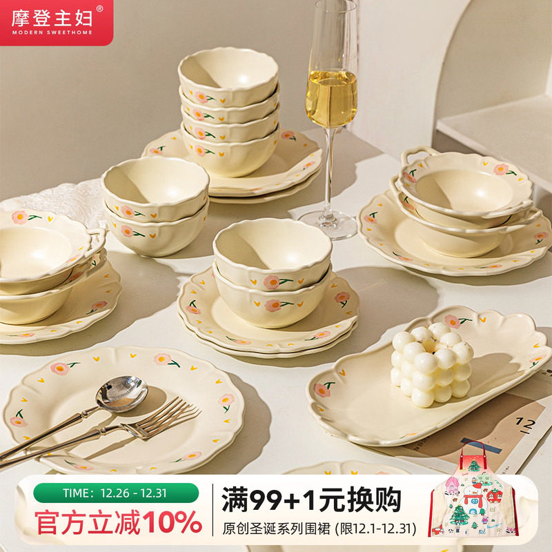 摩登主妇芍药碗碟餐具釉下彩饭碗家用2025新款高颜值碗具汤碗盘子