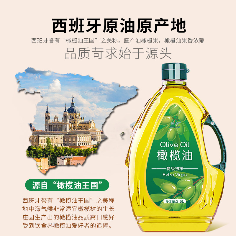 100%纯橄榄油2.5L特级初榨西班牙原油进口官方旗舰店正品食用油