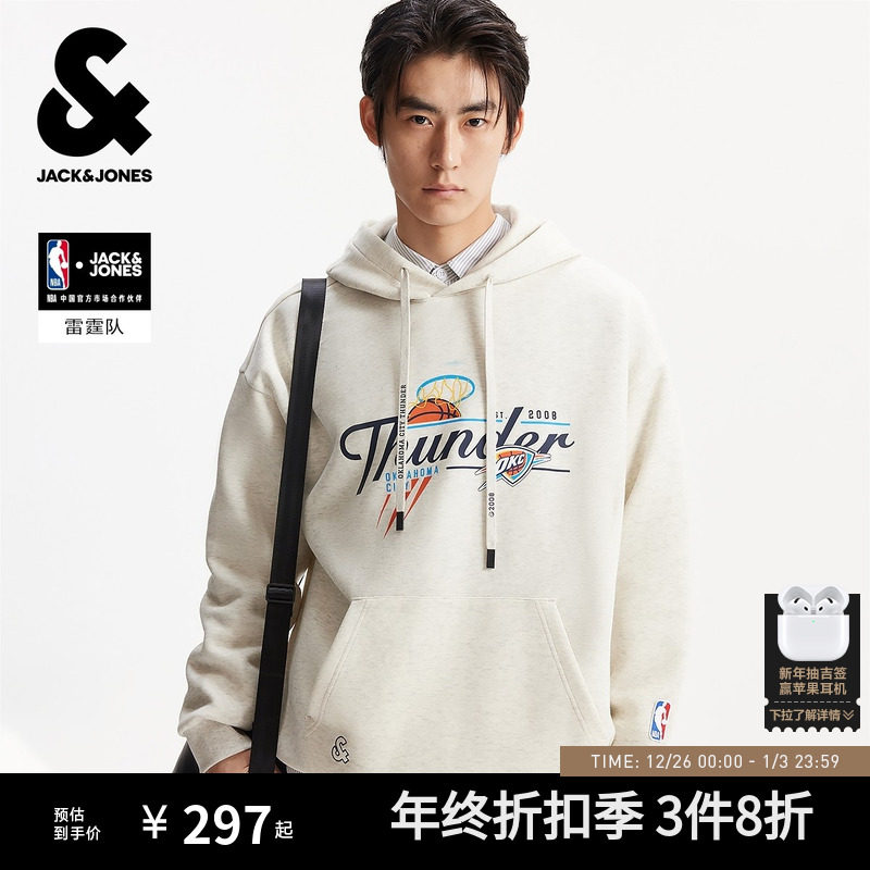 杰克琼斯NBA联名秋冬季男装卫衣俄克拉荷马雷霆队时尚百搭舒适
