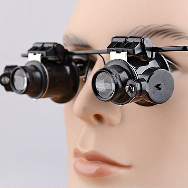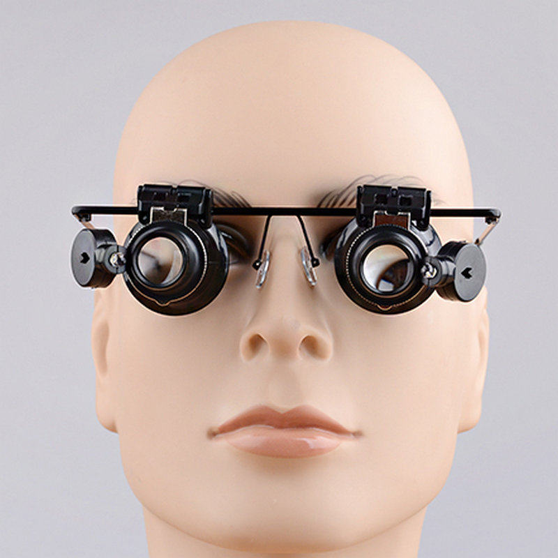 双眼头戴式放大镜带LED灯钟表维修20倍古董鉴赏手机维修鉴定包邮