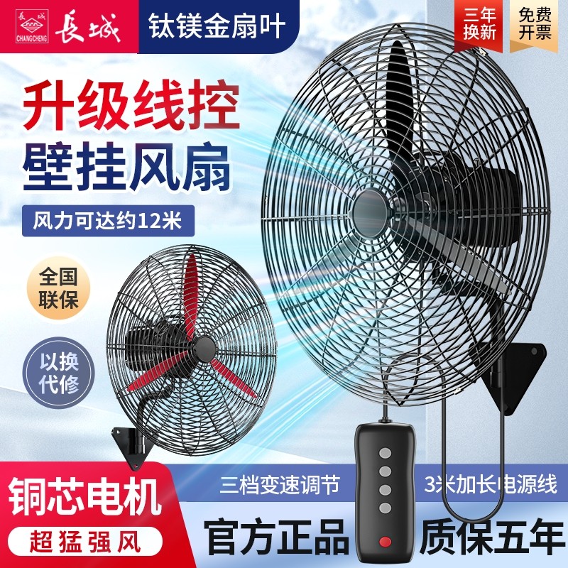 长城工业壁扇挂壁式电风扇大风力商用线控挂墙式强力大功率牛角扇