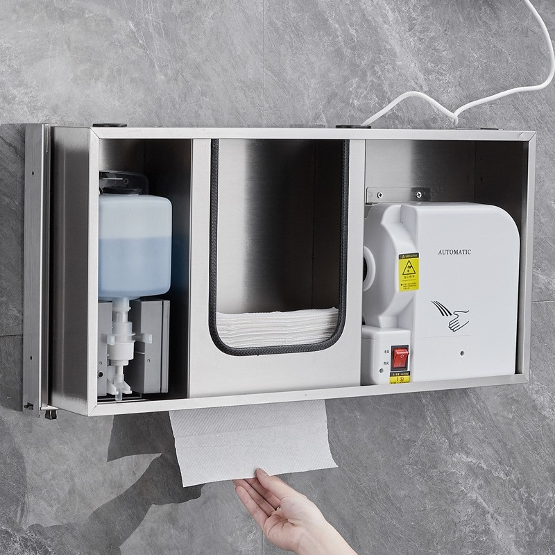 不锈钢镜后抽纸盒暗藏式镜柜下纸巾架嵌入式皂液器卫生间擦手纸盒