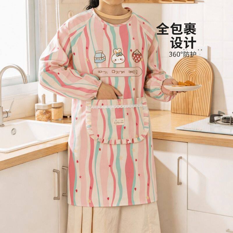 爆款春秋长袖罩衣成人家用厨房防水围裙耐脏工作服洋气防油全包