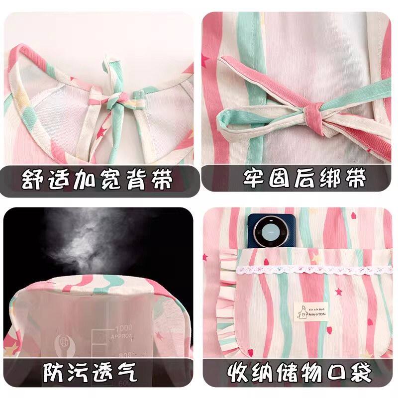 新款棉布耐磨围裙长袖厨房家用防污罩衣透气围腰做饭上班工作服女