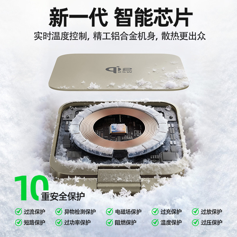 绿联Qi2无线充电器磁吸15W适用苹果iPhone17promax16小米手机安卓airpods耳机车载桌面底座MagSafe套装充电线