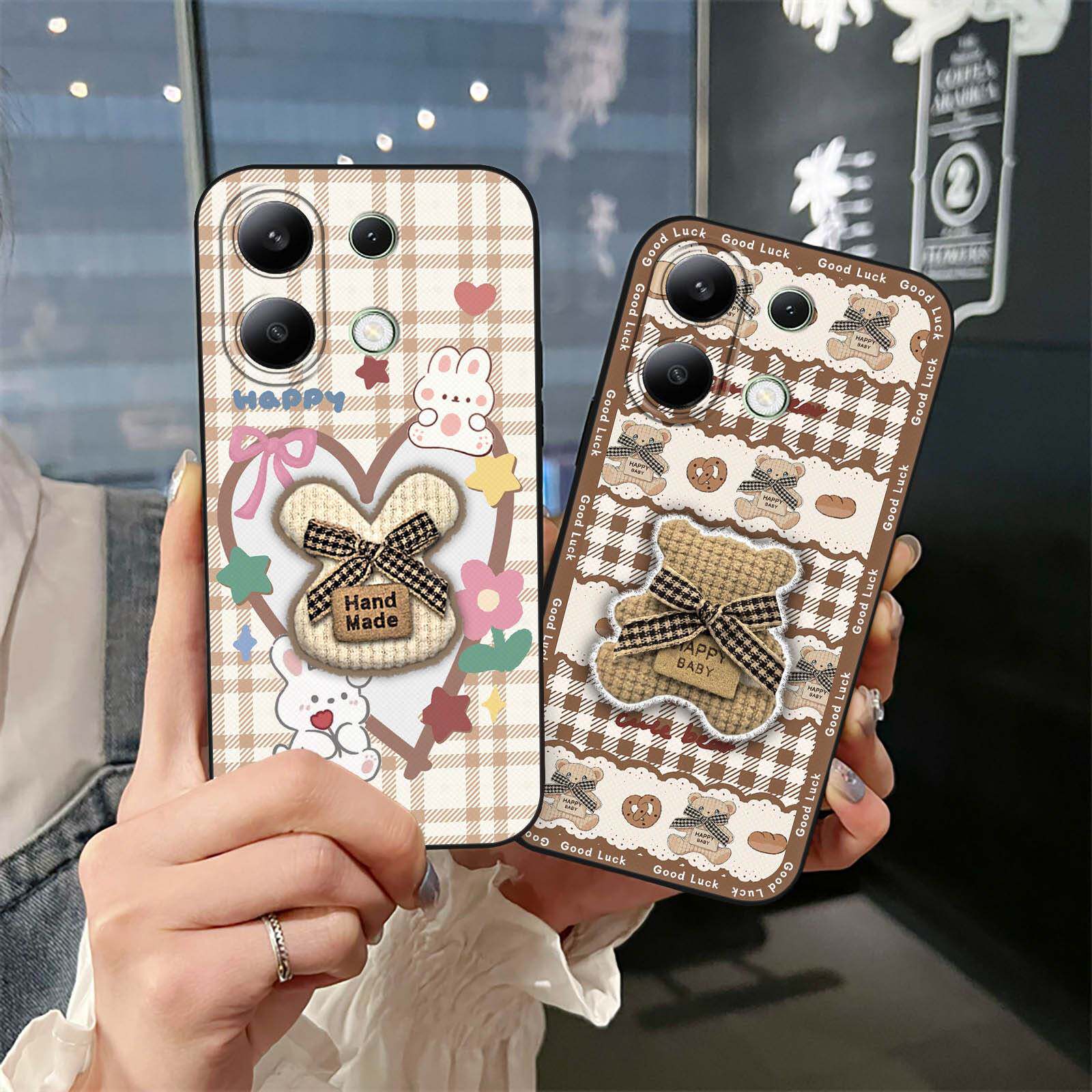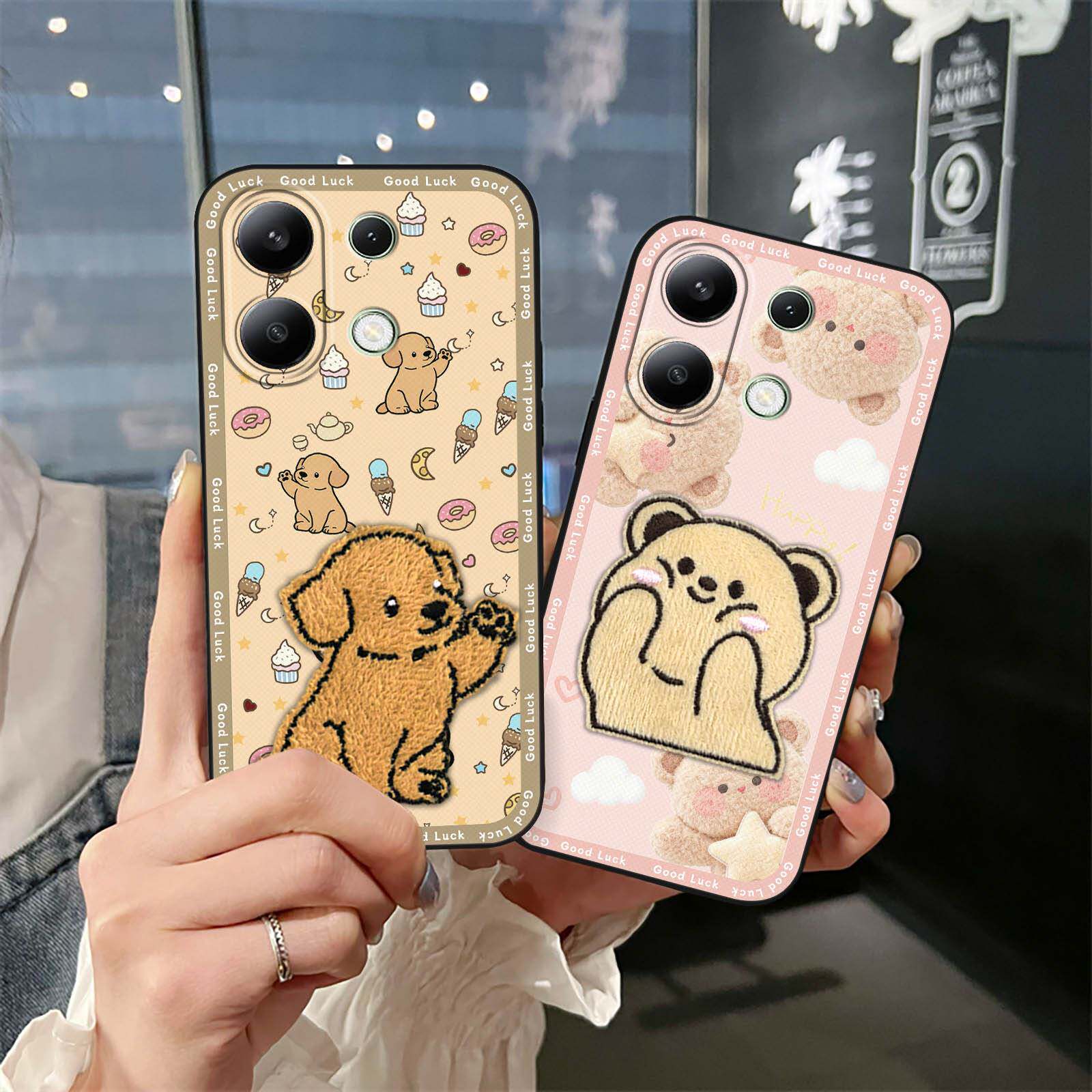 适用红米Note13 4G海外版手机壳创意硅胶立体布贴潮流纯色青春3D