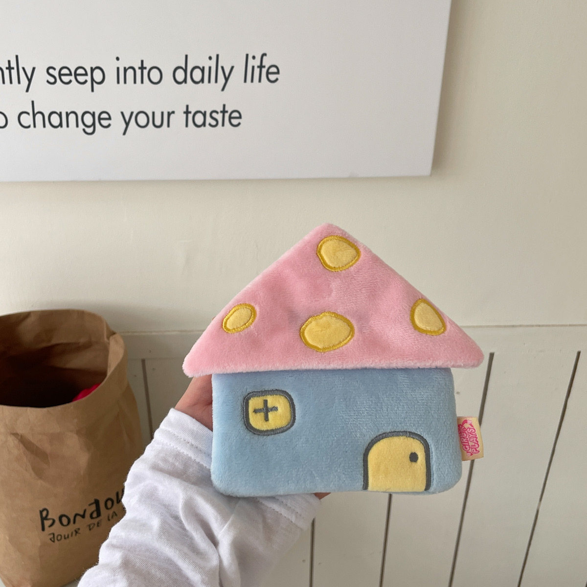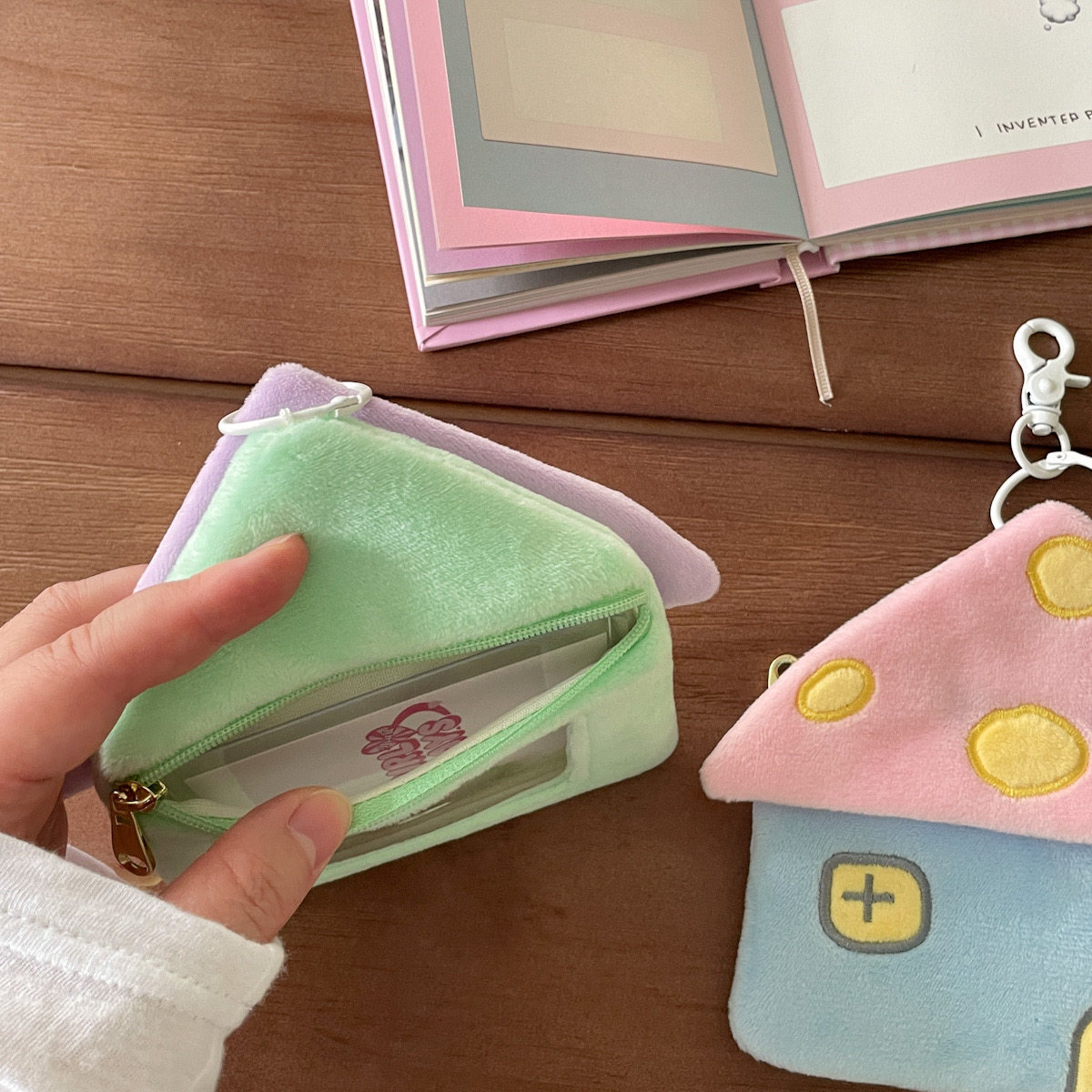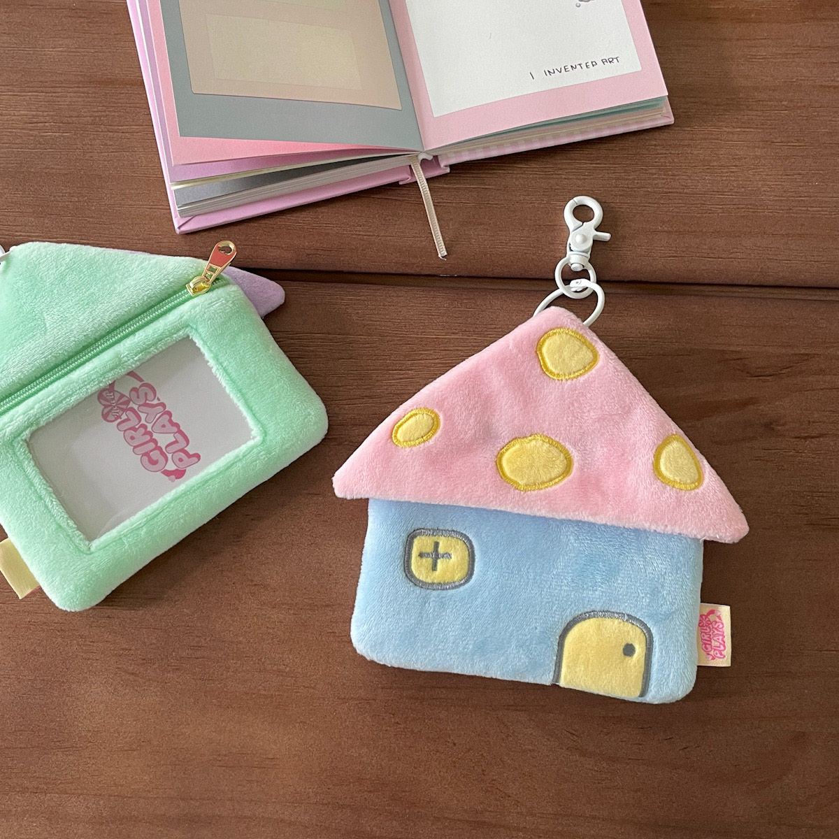 少女玩心原创粉蓝小房子毛绒卡包校园饭卡零钱包追星小卡卡套挂件