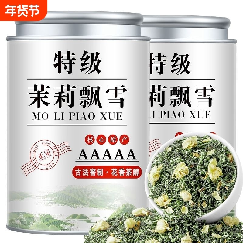 茉莉花茶叶5A特级绿茶正宗川派茉莉飘雪茉莉绿茶新茶送礼冷泡500g