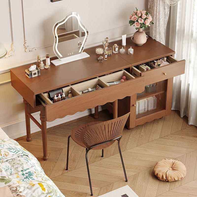 实木卧室化妆桌梳妆台斗柜一体式组合法式中古风带收纳储物化妆台