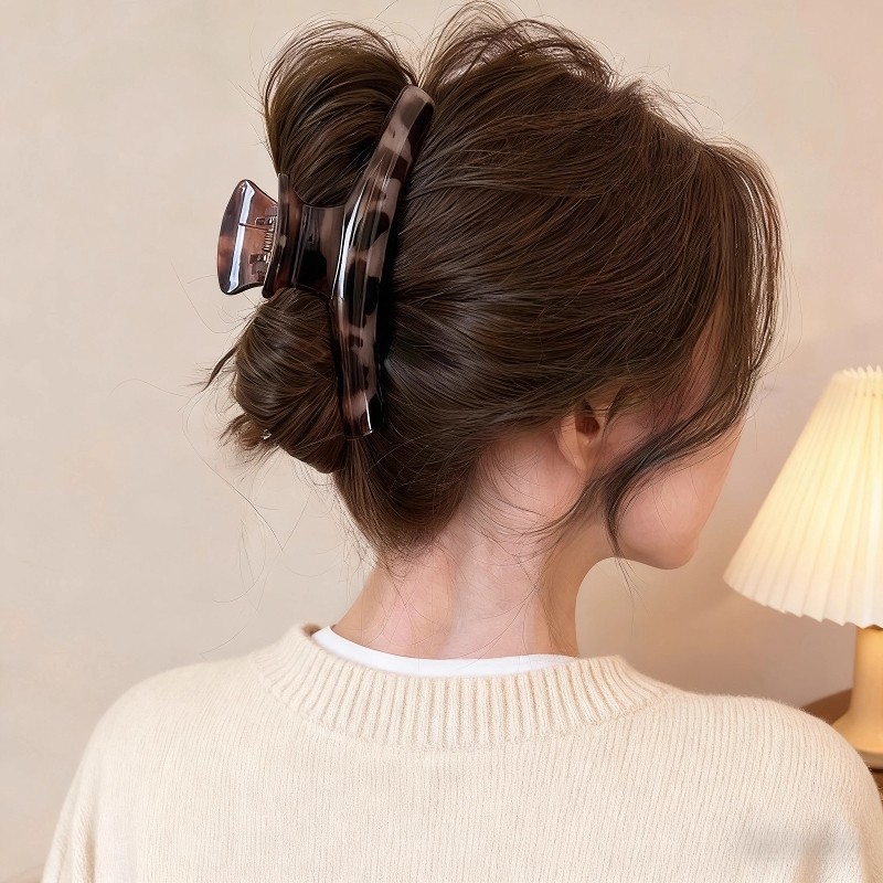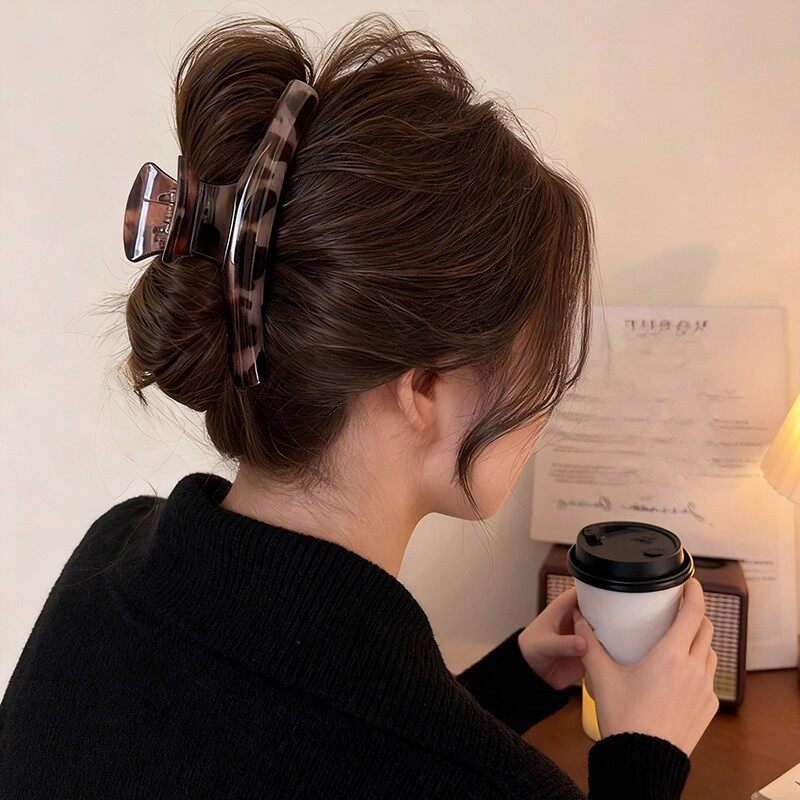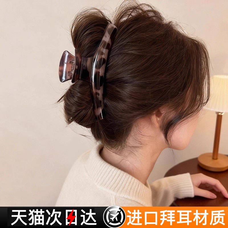 灰豹纹头发发夹女2025新款抓夹高级感后脑勺盘发鲨鱼夹子大号发饰