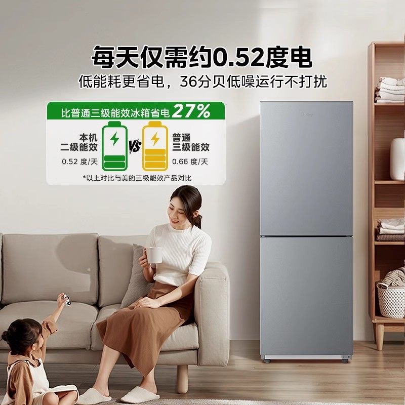 美的195/180+超薄双开两门家用小户型出租屋冰箱节能省电风冷无霜