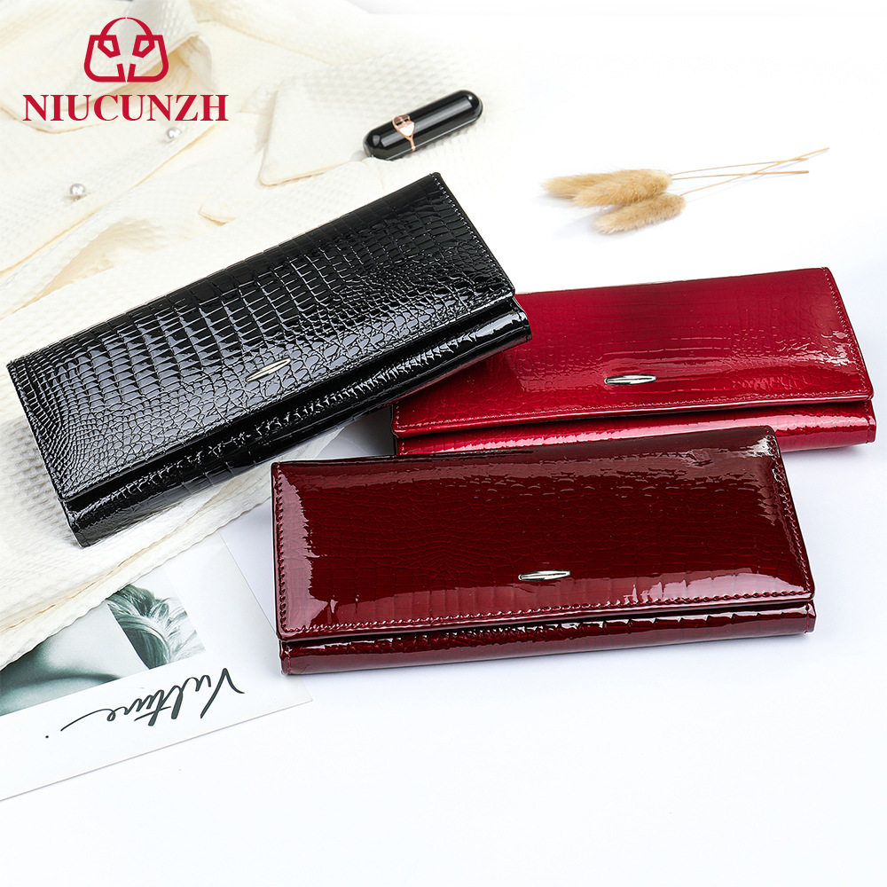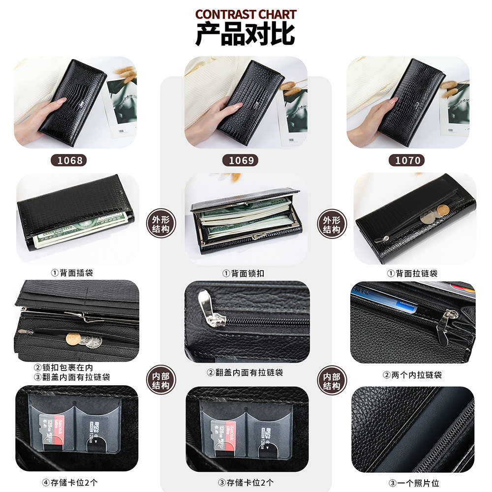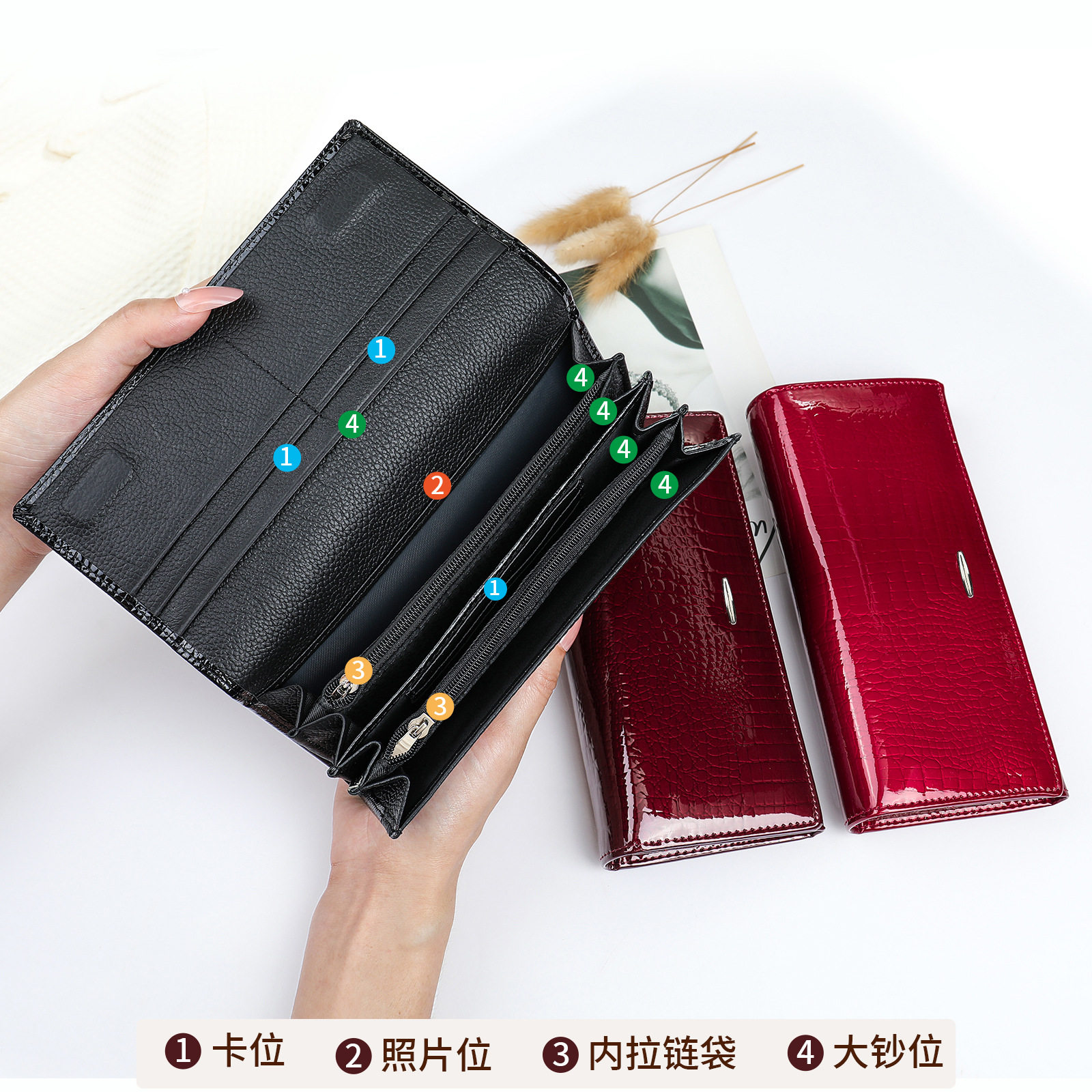 真皮防盗刷RFID钱包长款2023新款手拿包女跨境手包鳄鱼纹牛皮钱夹
