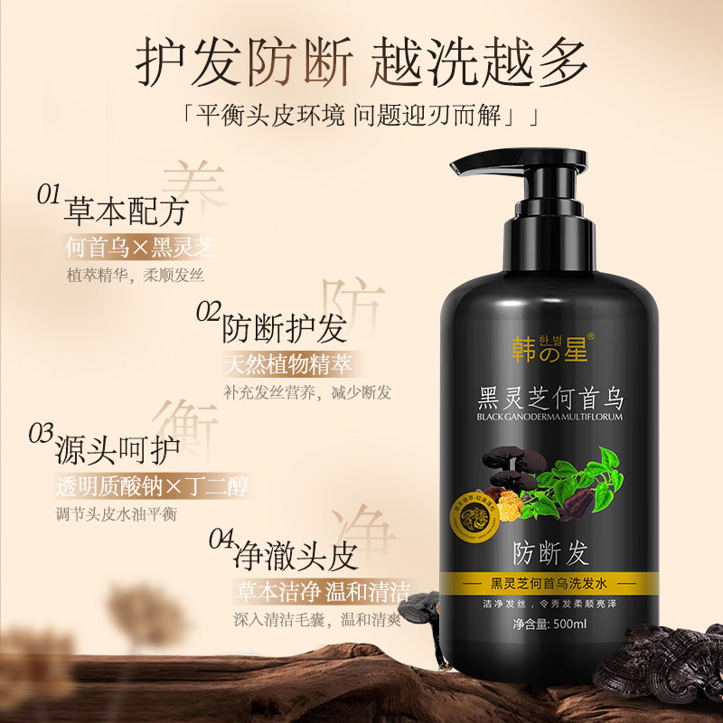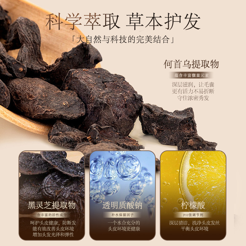 黑灵芝何首乌洗发水草本纯植物防断发去屑控油蓬松柔顺护发洗发露