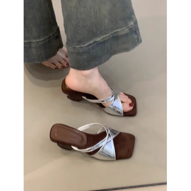 73hours女鞋马德里漫步2025夏法式高跟鞋凉鞋金色拖鞋女外穿凉拖