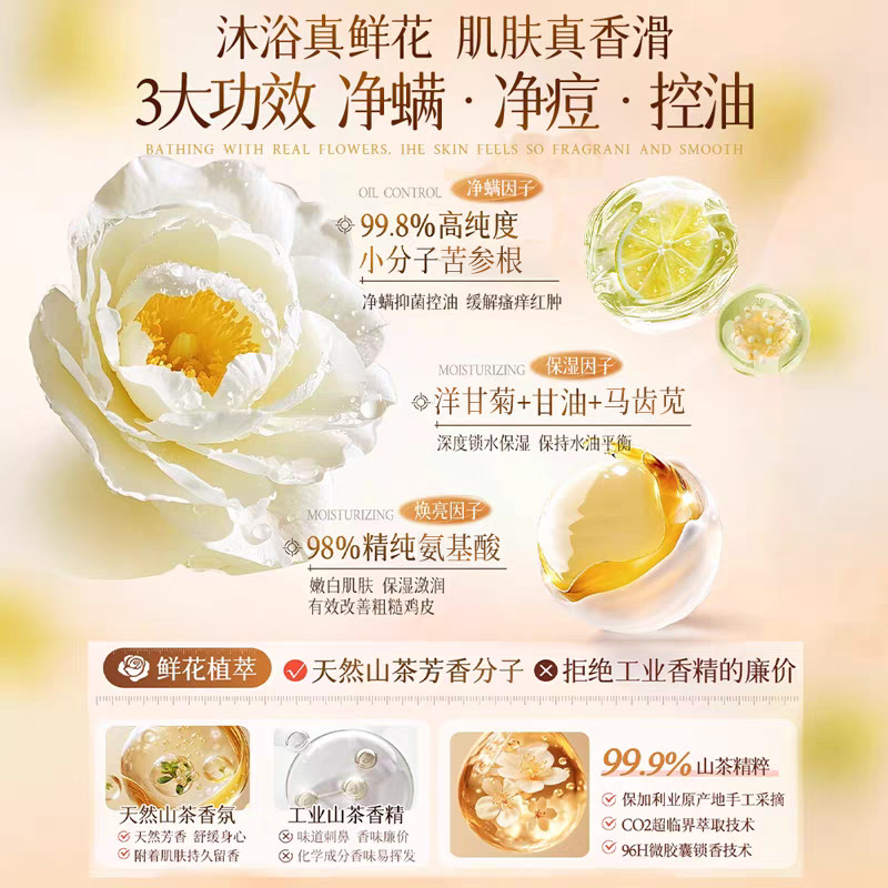 山茶沐浴露祛痘持久留香72小时香水女男士液乳官方正品牌香氛保湿