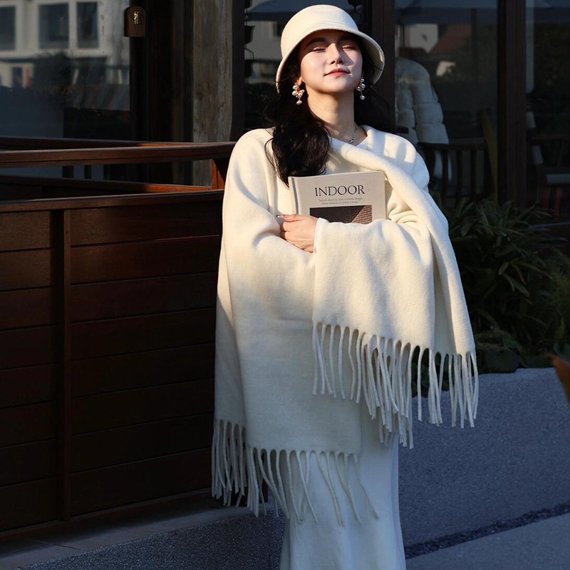 披肩外搭2025新款白色高级感流苏羊毛斗篷秋冬保暖百搭空调房围巾