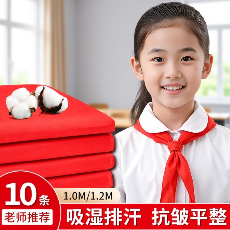 红领巾小学生纯棉不掉色通用抗皱初中生儿童加厚红邻巾小学小号全棉少先队大号队员一二年级高质量标准不褪色
