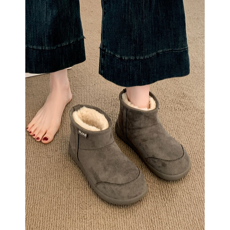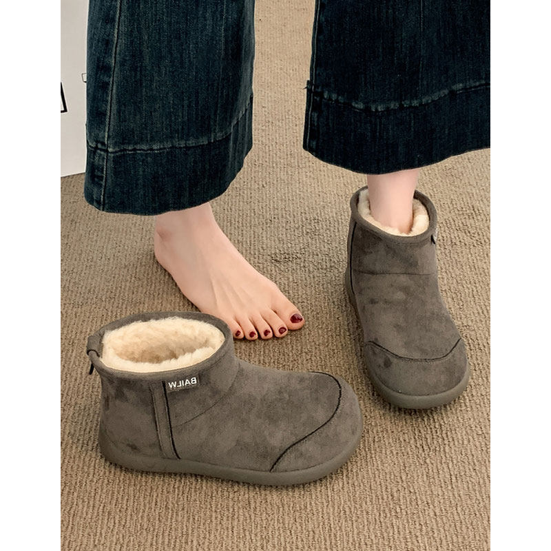平底灰色雪地靴女款2025冬季新款加绒加厚雪地棉靴子保暖棉鞋防水