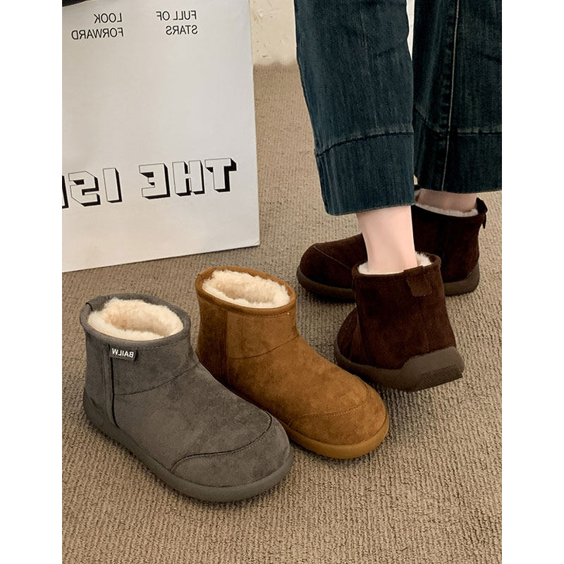 低帮厚底雪地靴女2025新款冬季懒人一脚蹬毛毛棉鞋加绒加厚女鞋子